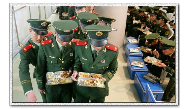 上海世博會(huì)中武警戰(zhàn)士使用印有“愛(ài)邦”商標(biāo)的鋁箔餐盒用餐